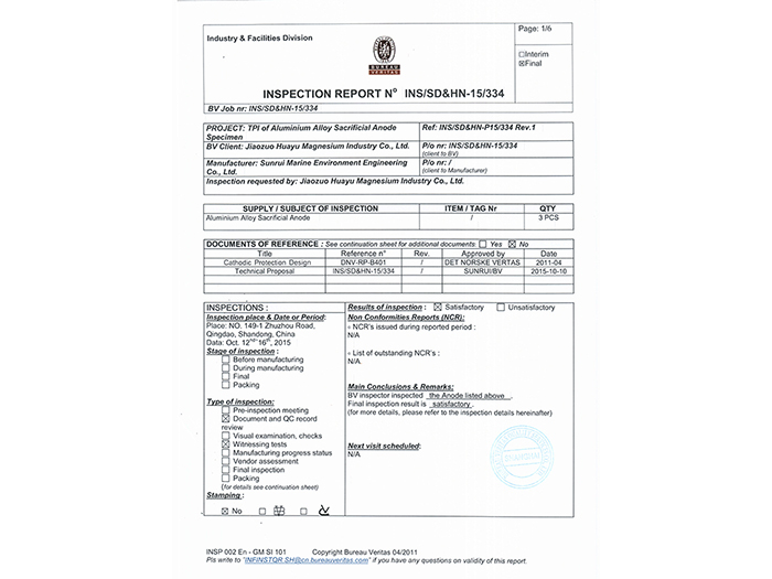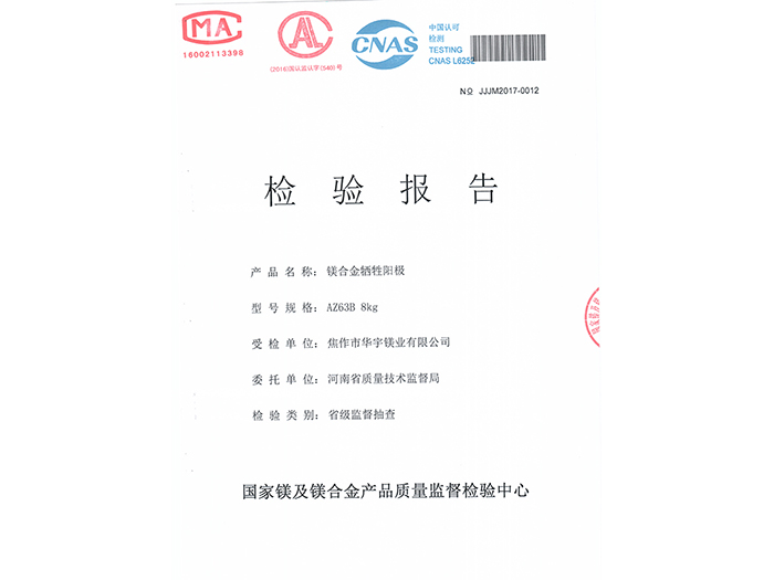 產(chǎn)品檢測(cè)鎂陽(yáng)極報(bào)告