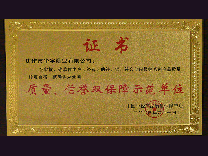 質(zhì)量、信譽(yù)雙保障示范單位