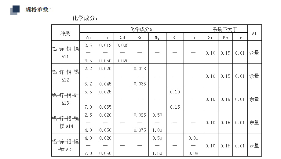 我公司生產(chǎn)的鋁合金犧牲陽極采用優(yōu)質(zhì)的原材料,成熟的生產(chǎn)工藝,先進(jìn)的儀器檢驗(yàn),確保每支陽極符合國標(biāo)要求。